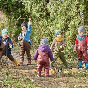 Wasser und Matsch abweisende Kleidung gibt es nur mit Plastik? Von wegen! Nachhaltigkeit und Matschhosen muss kein Widerspruch sein: Die Samsonshos...